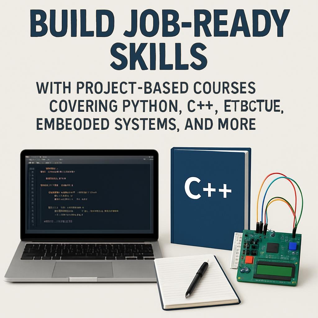 Build job-ready skills with project-based courses covering Python, C++, data structures, embedded systems, and more.